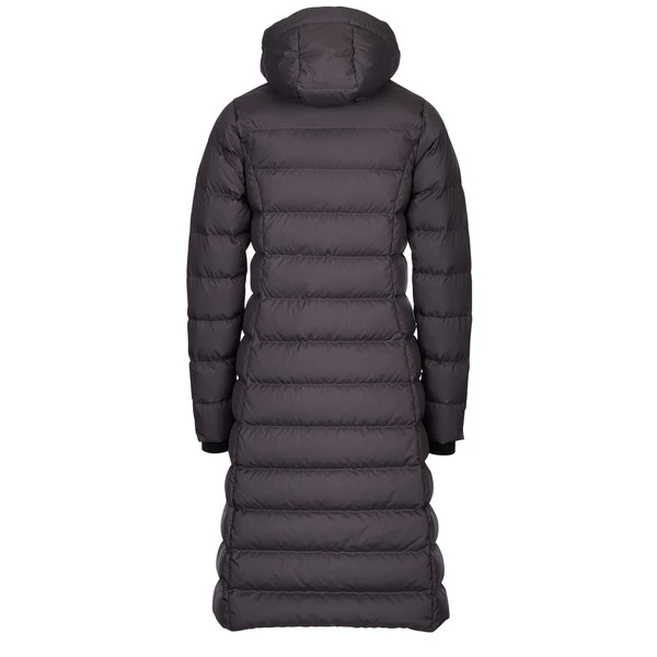 Das Innen- und das Außenmaterial ist komplett recycelt hat einen angenehm weichen, glatten Griff. So kannst du den Mantel schnell und einfach über darunter liegende Bekleidungsschichten ziehen. Dank wasserabweisender Imprägnierung hält der Mantel auch mal einem kurzen Regen- oder Schneeschauer stand, ohne dass sich das Material sofort mit Nässe vollsaugt. Der taillierte, aber nicht einengende Schnitt sorgt für Bewegungsfreiheit und eine schöne, feminine Passform. Mütze und Schal vergessen? Kein Problem – durch die daunengefütterte Kapuze und den hohen Kragen bleiben Kopf, Hals und Ohren dennoch angenehm warn. Ein funktionaler, praktisch ausgestatteter und absolut ansehnlicher Daunenmantel!
